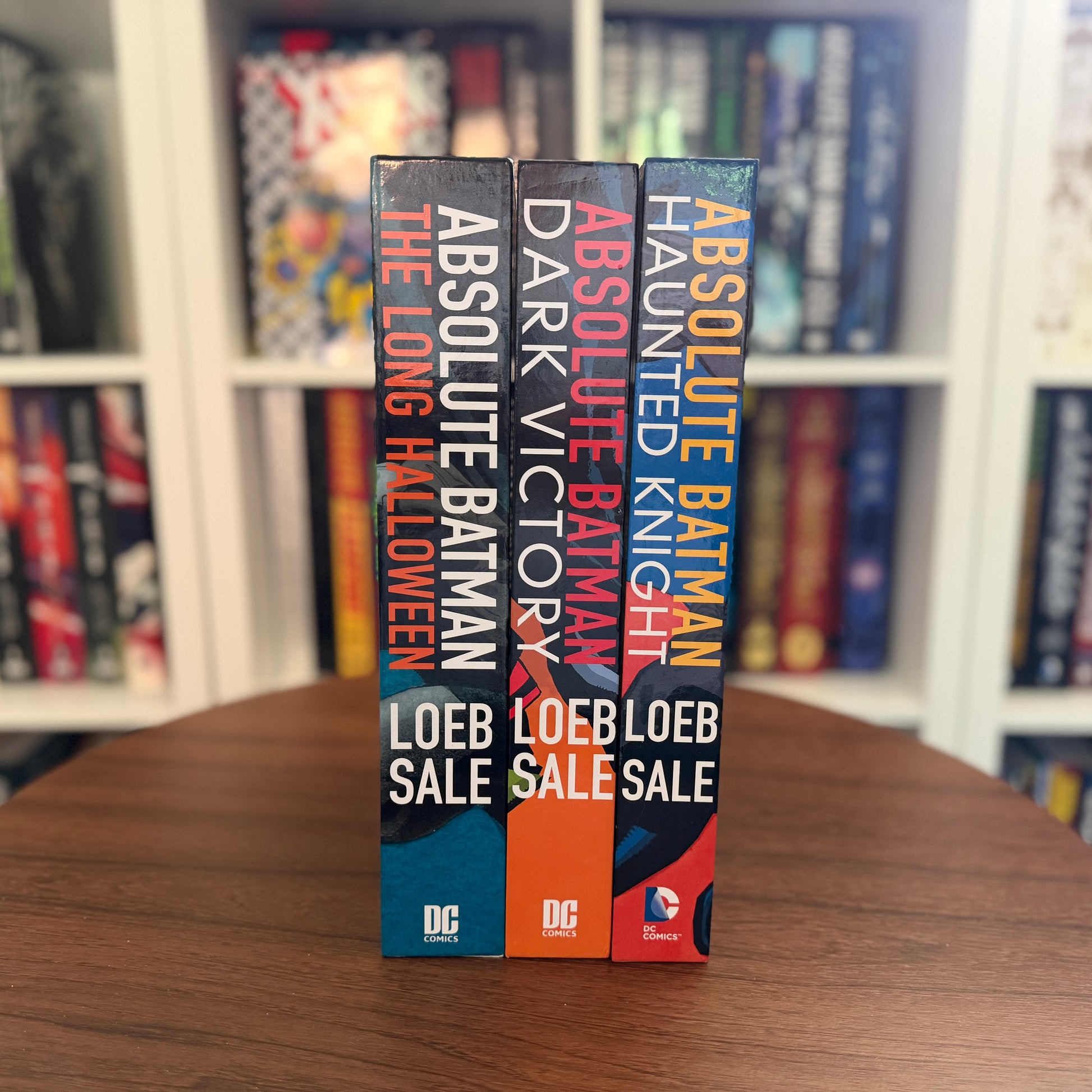 Collect the definitive Batman stories from Jeph Loeb and Tim Sale in one oversized slipcase bundle. This Absolute Edition set includes Batman: The Long Halloween, Batman: Dark Victory, and Batman: Haunted Knight—all newly collected in deluxe oversized format and housed together in a matching slipcase.