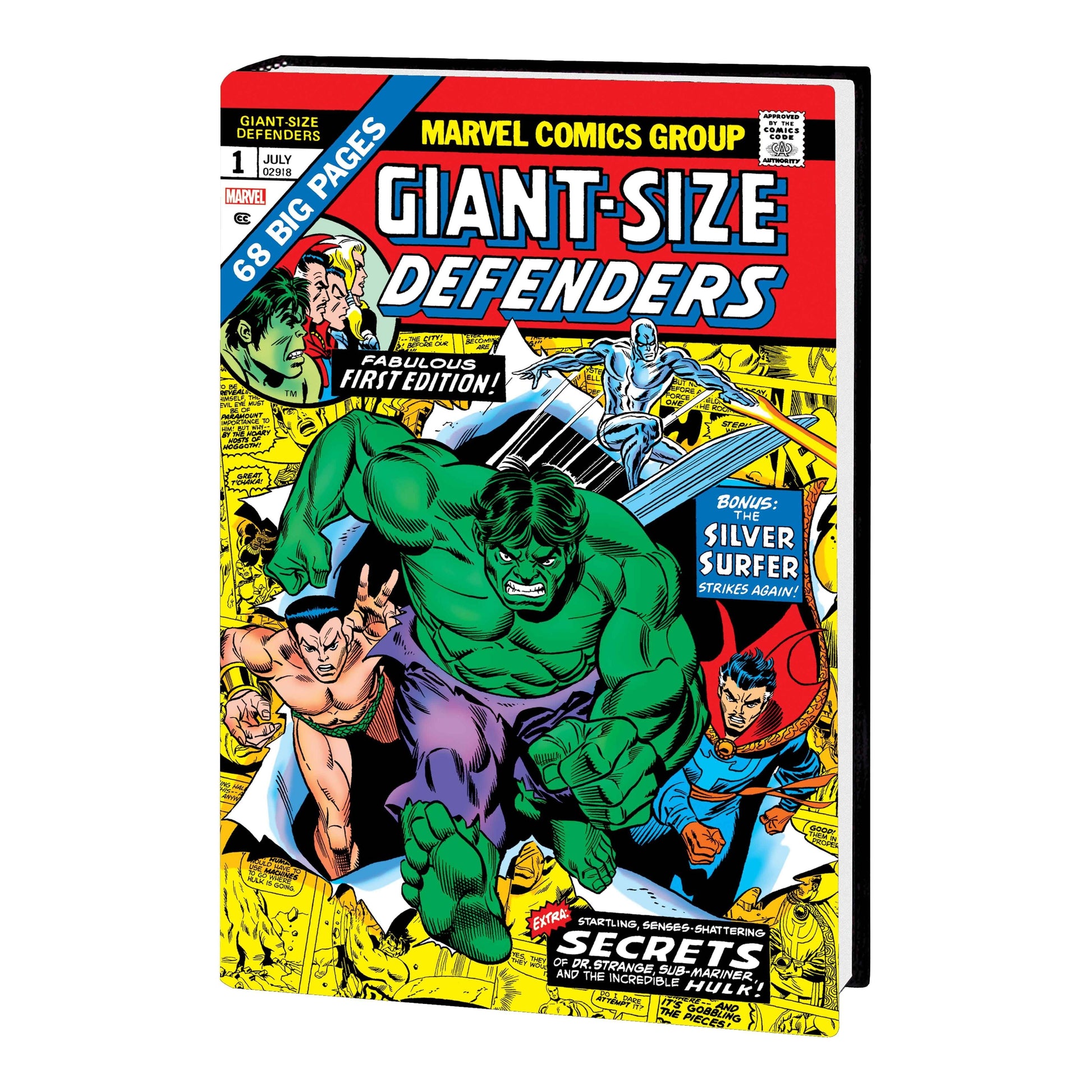 Doctor Strange, the Hulk, the Sub-Mariner, the Silver Surfer and Valkyrie! They are the dynamic Defenders, comics' greatest "non-team," and they do not rely on bylaws and butlers. They join together in moments of utmost crisis - to face incomprehensible enemies like Dormammu, the Nameless One and the Enchantress! But when the Defenders encounter heroes of a more conventional stripe, it's war - the watershed hero vs. hero Avengers/Defenders War, no less! This massive omnibus also sees Hawkeye, the Black Knight, Daredevil, Luke Cage, Nighthawk and Daimon Hellstrom join the Defenders in classic adventures. It's a must-have edition collecting Roy Thomas, Steve Englehart and Len Wein's complete DEFENDERS runs in one beautifully restored volume! Collecting SUB-MARINER (1968) #34-35, MARVEL FEATURE (1971) #1-3, DEFENDERS (1972) #1-19, GIANT-SIZE DEFENDERS #1-2, and AVENGERS (1963) #115 (B STORY) and #116-118.